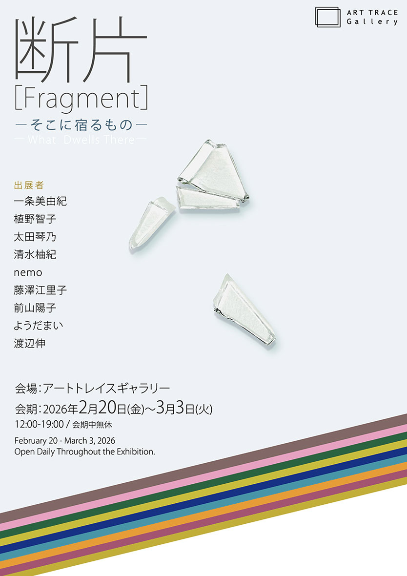 「断片」という多層的な意味を内包する言葉のもとに、9人の作家が集まりました。私たちはその見えにくい全体に想いや問いを巡らせ、それぞれの視点から異なる角度でこのテーマに光をあてます。